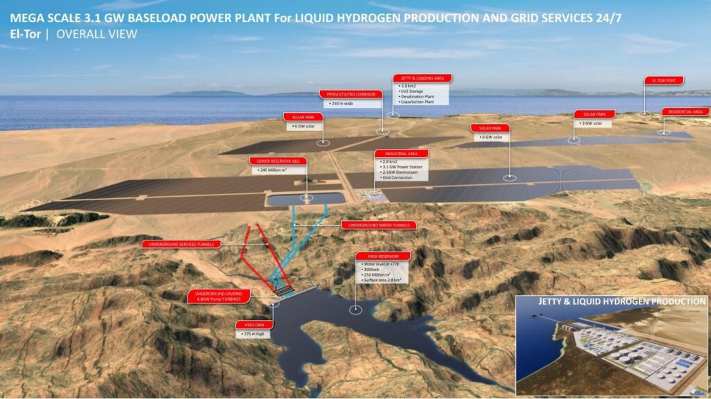 The project covers 15 GW of solar generation, 3.1 GW of pumped hydropower storage, a seawater desalination system, a green hydrogen electrolysis plant, a liquefaction plant with liquid hydrogen storage tanks, and a RORO terminal and jetty for the future export of green hydrogen. Renergy pursued this multi-year assessment not as a regulatory obligation, but as a genuine expression of their leadership in developing this project to the highest international standards.